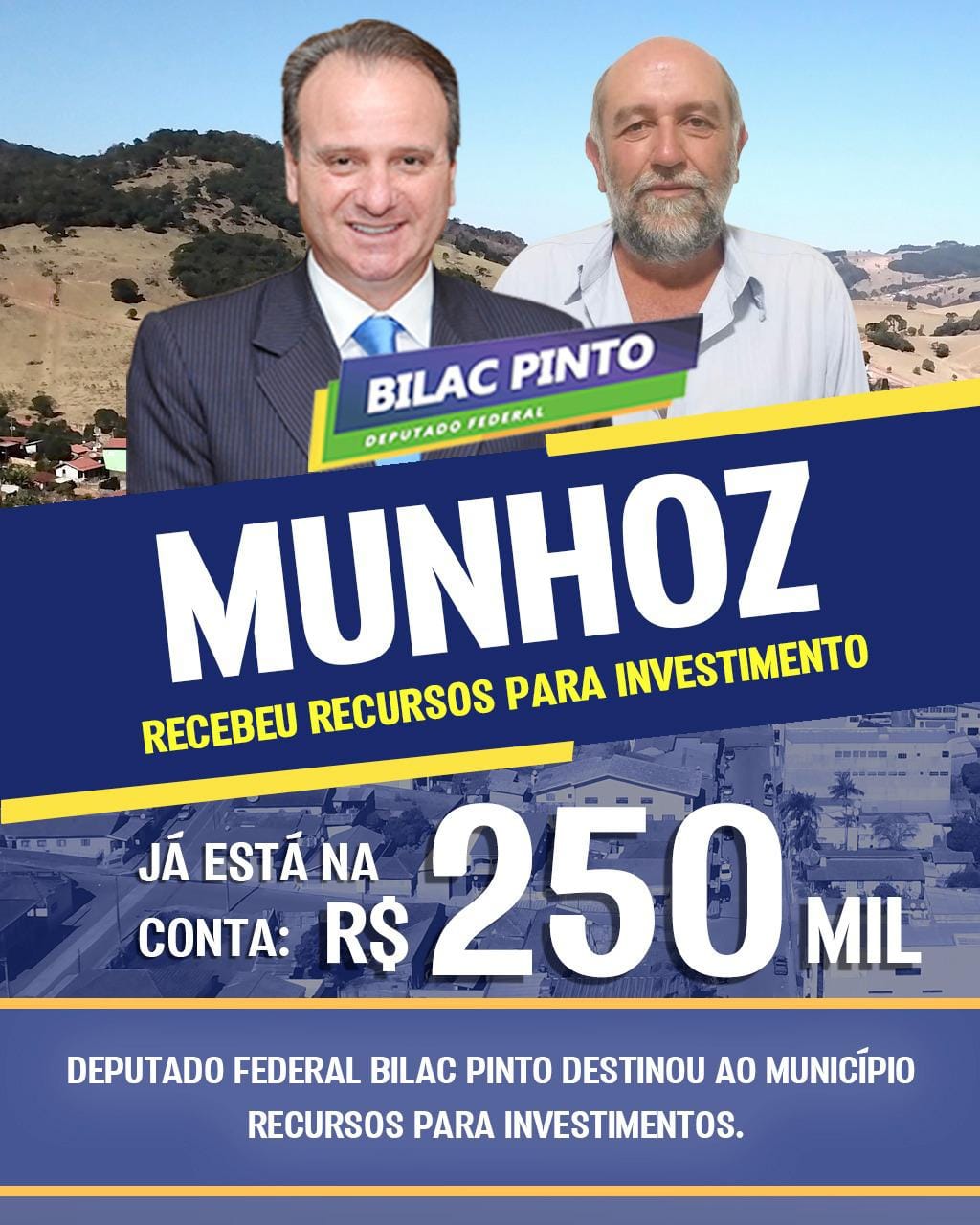 ESTÁ NA CONTA! O Município de Munhoz recebeu hoje (04) agosto, mais um recurso de emenda parlamentar para investimento em infraestrutura, no valor de R$ 250 mil reais. O Prefeito Vardão em nome de toda a população agradece o compromisso e pa...