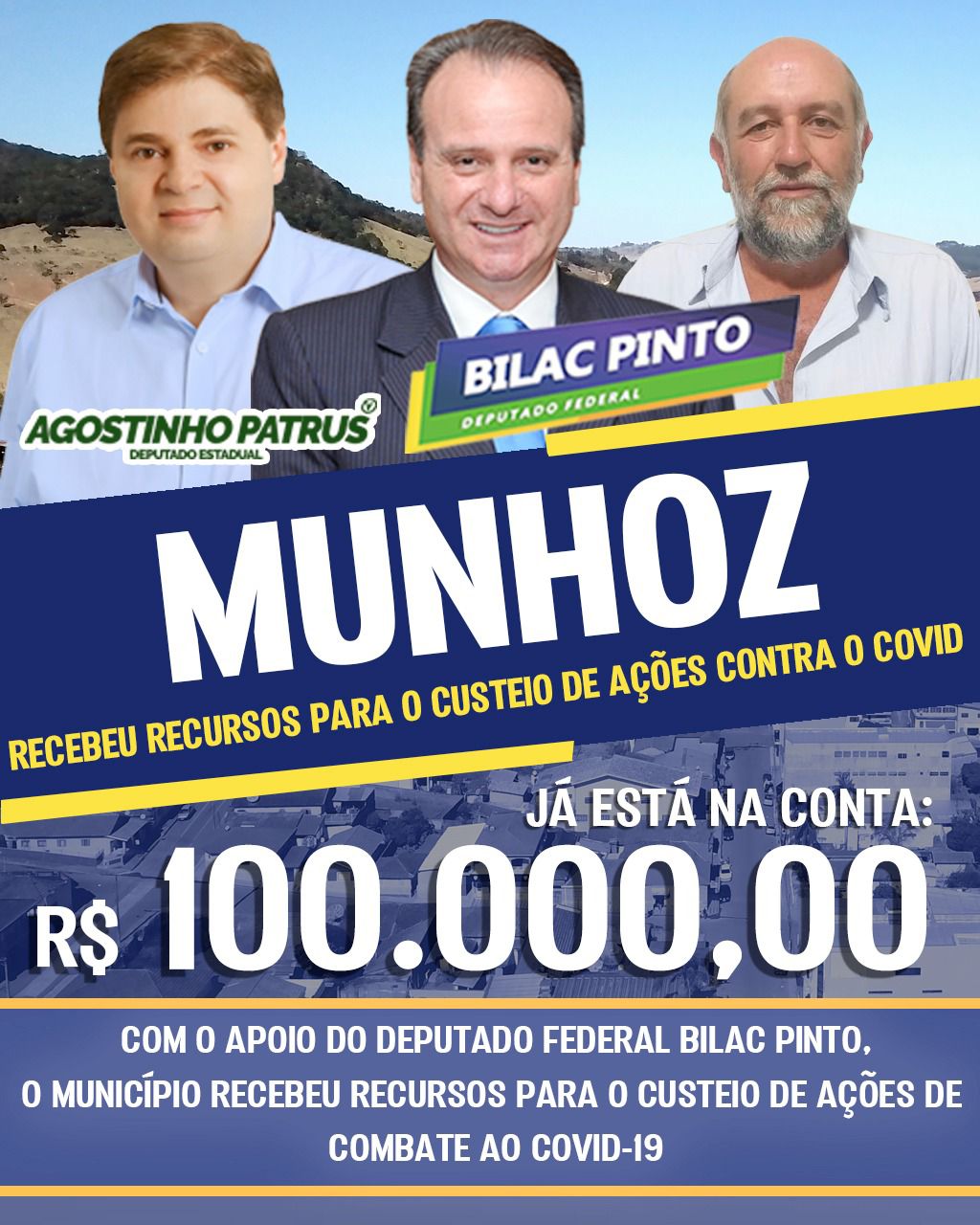 O Município de Munhoz recebeu um recurso de emenda parlamentar destinada para Saúde custeio para ações de combate ao Covid-19, no valor de R$ 100 mil reais. O Prefeito Vardão em nome de toda a população, agradece a parceria de sempre dos a...