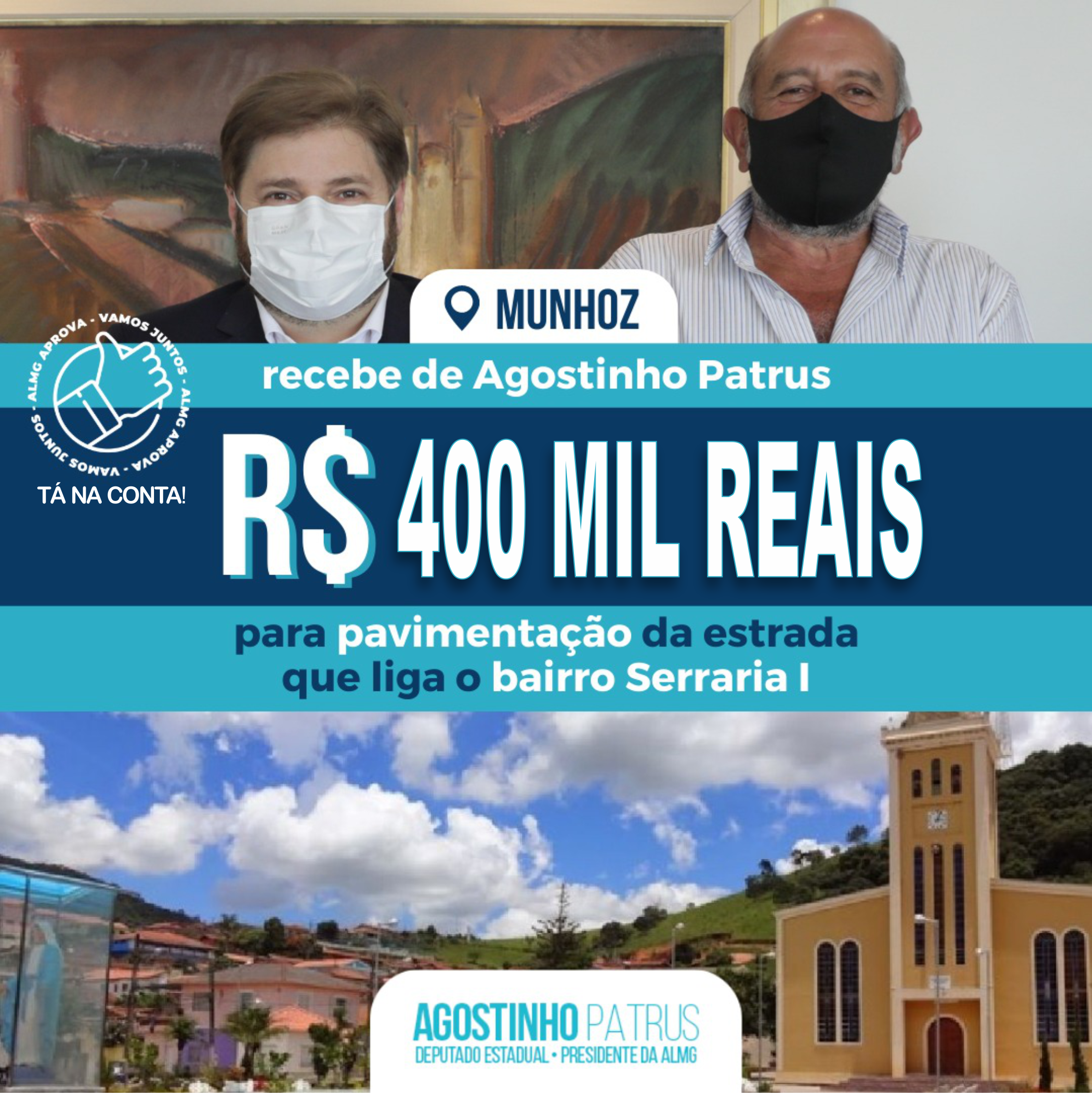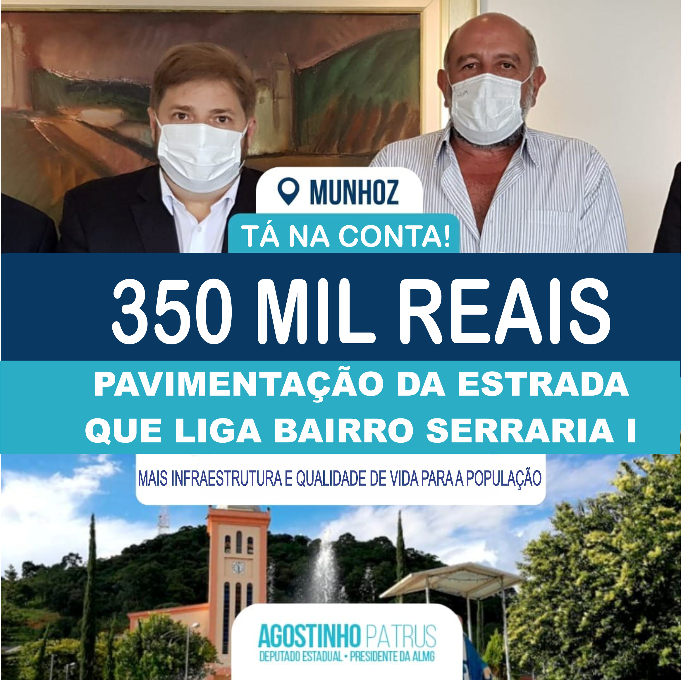 350 MIL REAIS PARA PAVIMENTAÇÃO ESTRADA SENTIDO AO BAIRRO SERRARIA I. O Prefeito Vardão, em nome de toda a população agradece ao amigo Deputado Estadual e Presidente da Assembleia Legislativa de Minas Gerais, Agostinho Patrus e Deputado Fede...