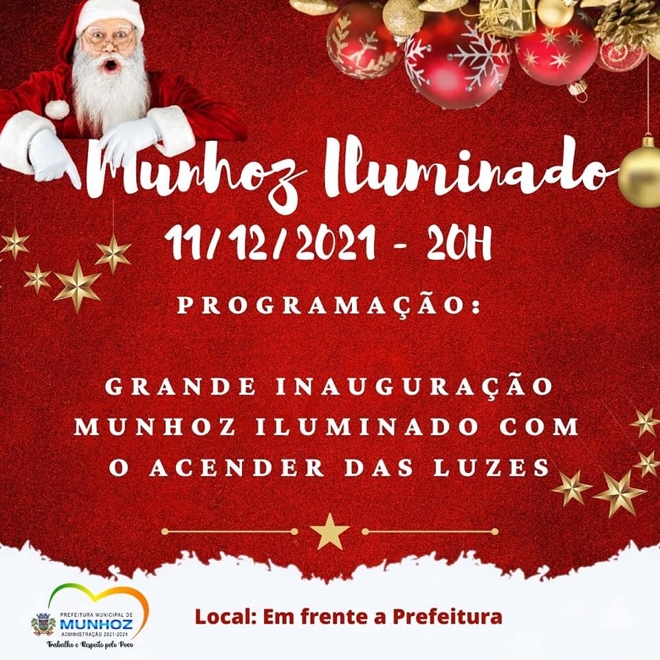 A Prefeitura de Munhoz, através da Secretaria de Turismo e Cultura, está preparando muitas novidades para este Natal, com diversas atrações que promete encantar crianças, jovens e adultos. 📍Dia 11/12/2021(SÁBADO), às 20 h, na Praça da ...